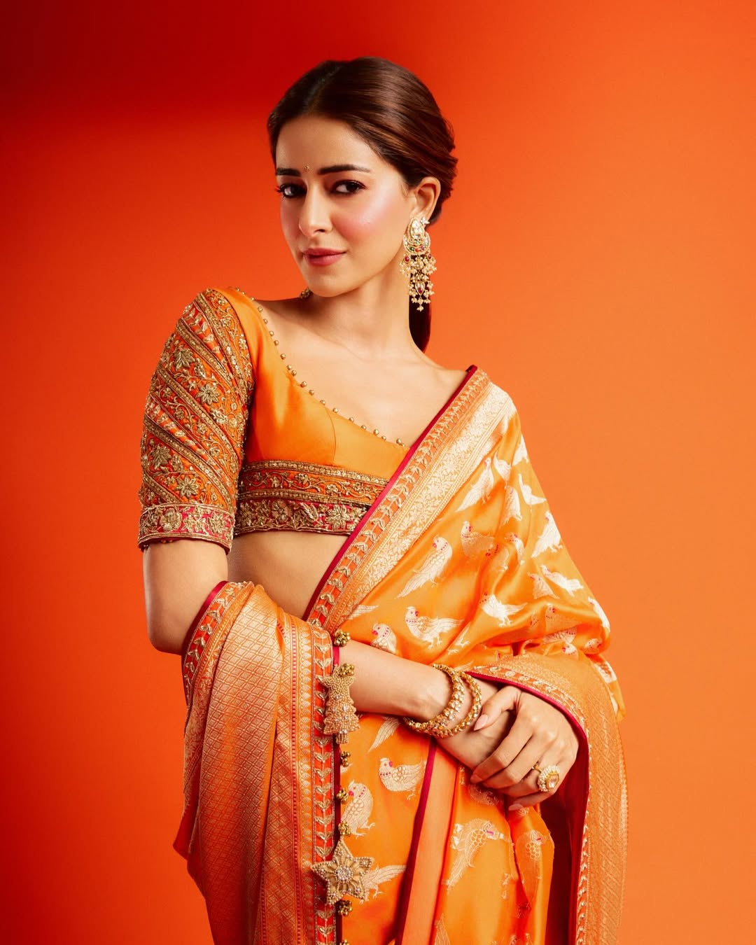 నటి అనన్య పాండే ప్రకాశవంతమైన నారింజ రంగు బనారసి బ్రోకేడ్ చీర ధరించి ఉన్న ఫోటోను తన అభిమానులతో పంచుకున్నారు. ఈ ఫోటోలో ఆమె స్వదేశ్ రూపొందించిన చేనేత చీరను ధరించి ఉన్నట్లు కనిపిస్తుంది. ఆమె తన క్యాప్షన్లో, భారతదేశపు మాస్టర్ వీవర్ల ప్రతిభ మరియు కృషిని హైలైట్ చేసే బనారసి చీరను ధరించడం గర్వంగా ఉందని రాసింది. ఆమె తన పోస్ట్లో స్వదేశ్ ఆన్లైన్ మరియు డిజైనర్ మనీష్ మల్హోత్రా గురించి కూడా ప్రస్తావించింది. తన ఫ్యాషన్ క్షణంతో పాటు, అనన్య తన 'తు మేరీ మై తేరా, మై తేరా తు మేరీ' చిత్రం కోసం కూడా వార్తల్లో నిలుస్తోంది, ఇందులో ఆమె దాదాపు ఏడు సంవత్సరాల తర్వాత నటుడు కార్తీక్ ఆర్యన్తో తిరిగి కలుస్తుంది. జైపూర్లో జరిగిన ఒక మీడియా కార్యక్రమంలో, అనన్య కార్తీక్ గురించి హృదయపూర్వకంగా మాట్లాడింది మరియు సెట్లో అతను పనిచేసే విధానాన్ని ప్రశంసించింది. అతను తన పాత్రను మాత్రమే కాకుండా మొత్తం సినిమాను చూస్తున్నందున అతను చుట్టూ ఉన్నప్పుడు తాను ఎల్లప్పుడూ సుఖంగా ఉంటానని ఆమె చెప్పింది. ఆమె ప్రకారం, ప్రతి ఒక్కరూ చేర్చబడ్డారని మరియు విలువైనవారని అతను చూసుకుంటాడు.